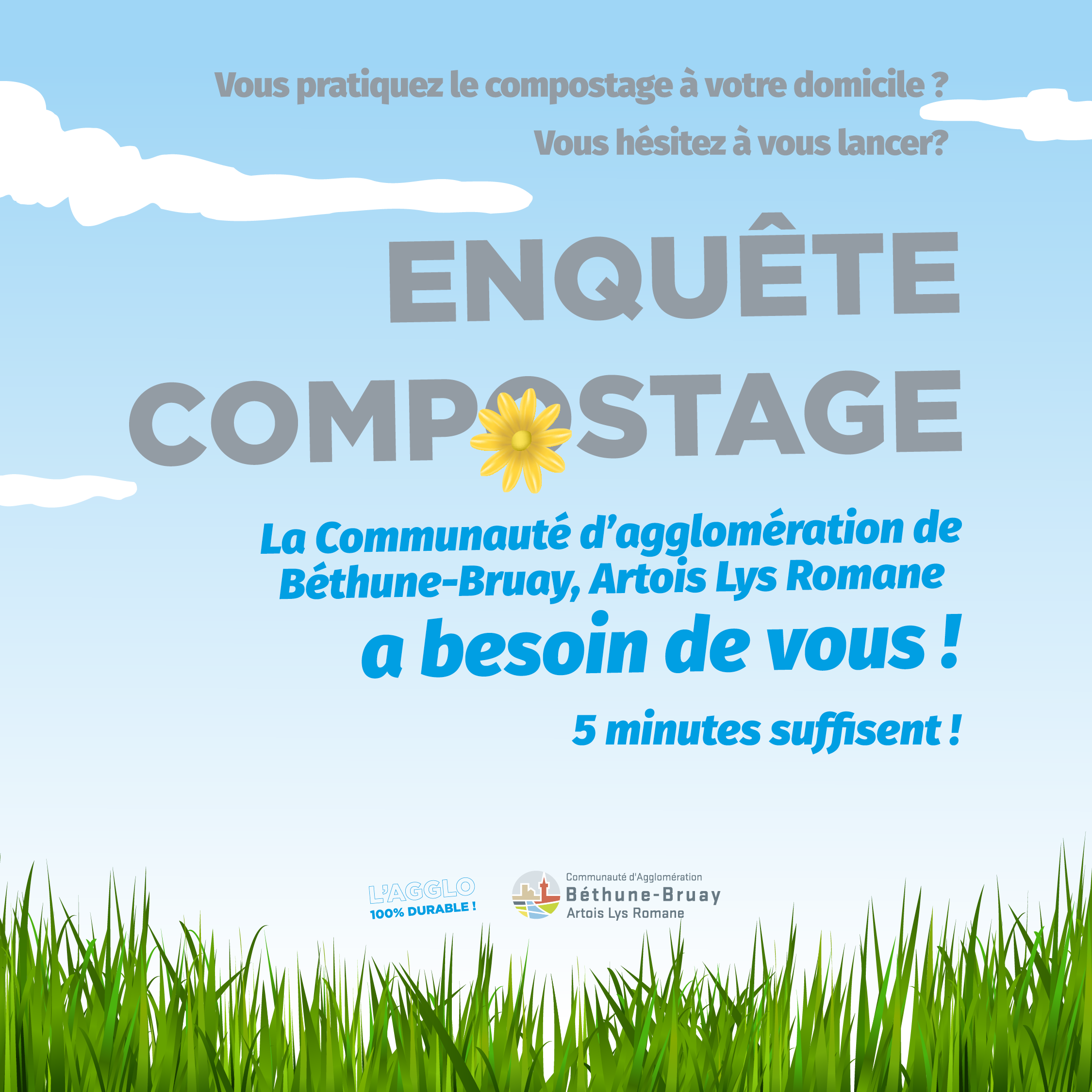L'Agglo a confié à des étudiants de l’école Junia ISA de Lille la mission d’enquêter sur les habitudes de compostage des habitants du territoire. Deux groupes d’étudiants ont ainsi conçu deux questionnaires, chacun destiné à une moitié des communes.