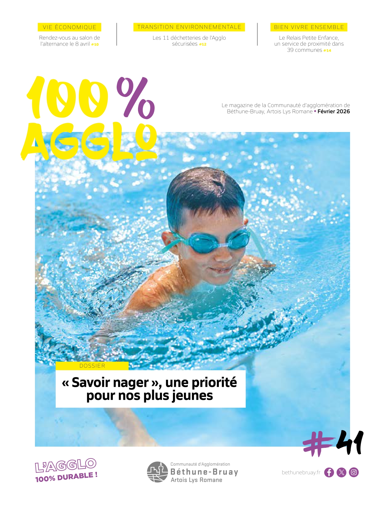 Le nouveau numéro du magazine communautaire "100 % Agglo" est disponible ! Dans ce premier numéro de l'année, découvrez un zoom sur les actions de l'Agglo pour le "Savoir nager".
