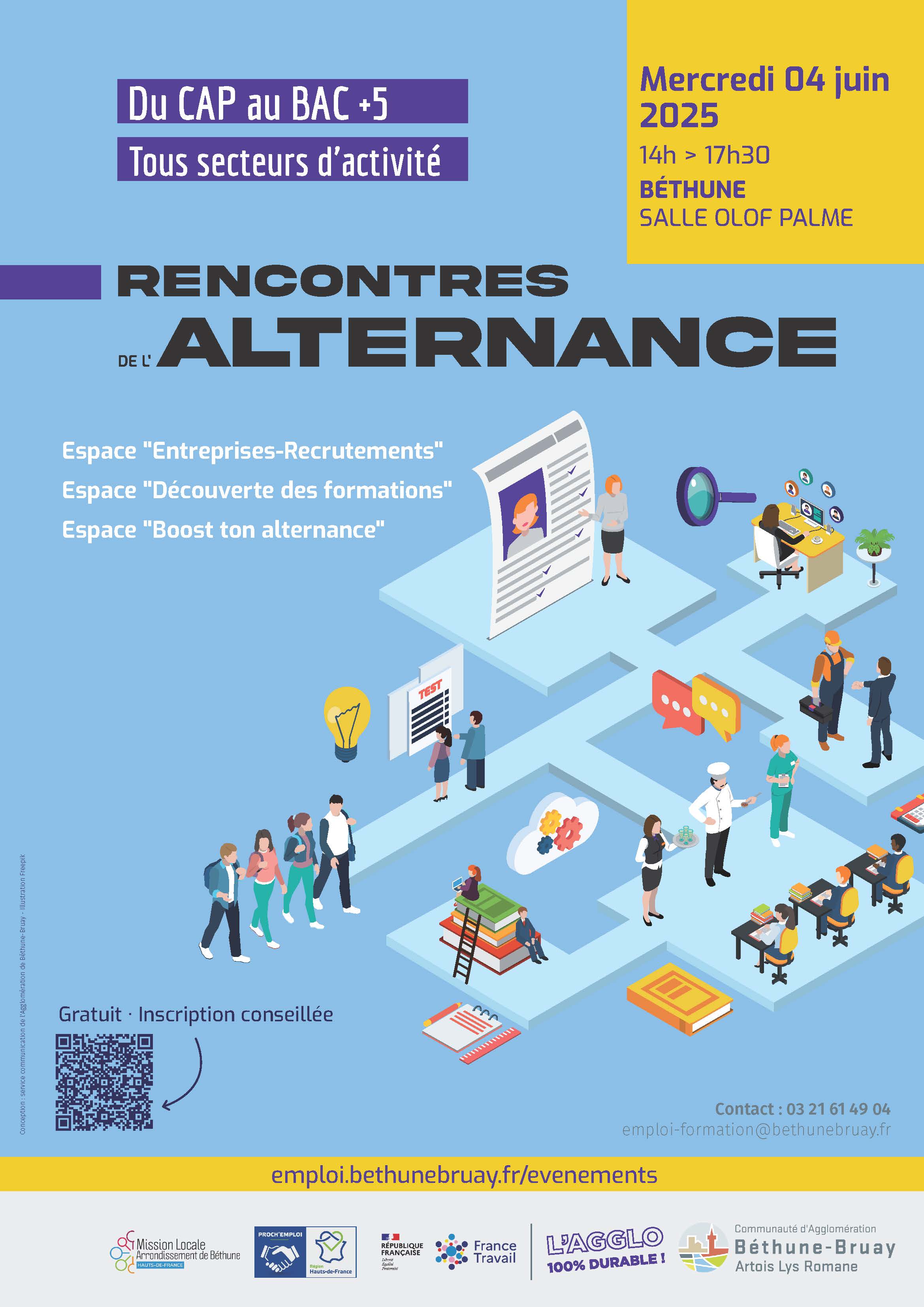 Le mercredi 4 juin 2025, la salle Olof Palme de Béthune accueille Les Rencontres de l’Alternance, un forum dédié à l’emploi et à la formation.